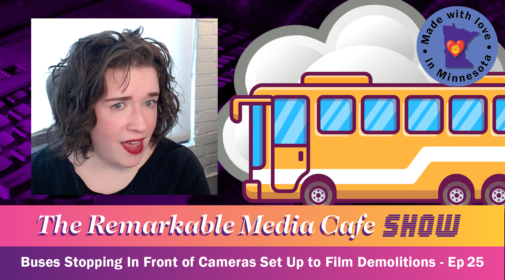 Buses Stopping in Front of Cameras Set Up to Film Building Demolitions
